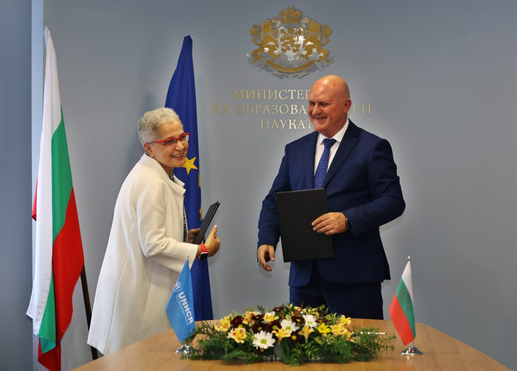 Служебният министър на образованието и науката проф. Галин Цоков и представителят на Службата на Върховния комисариат за бежанците на ООН в България Седа Кузуджу подписаха Меморандум за сътрудничество между двете институции, съобщава пресцентърът на МОН.