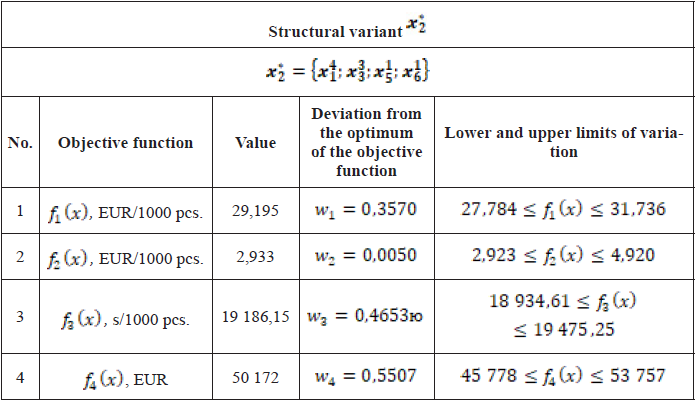Table 2. Values of the technical and economic characteristics of the elementary devices that make up the AAS variants for assembling the brush holder unit