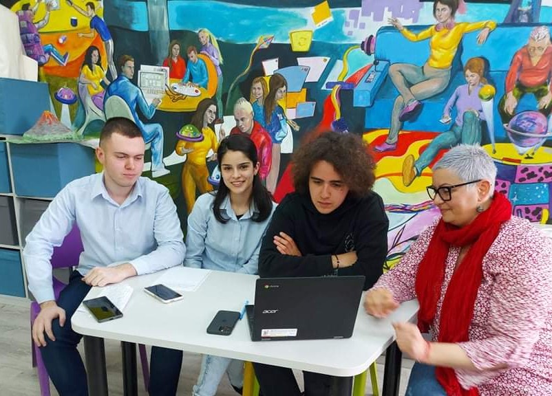 Елена Вързилова показва на учениците си как да използват изкуствения интелект. Снимки Личен архив