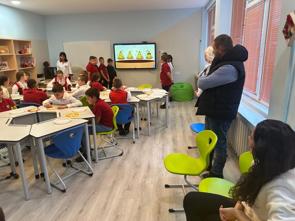 В рамките на откриването петокласници проведоха урок по математика за дробите на английски език, като използваха интерактивен екран. Те демонстрираха и как използват новите технологии за усвояване на знания по литература и по четене.