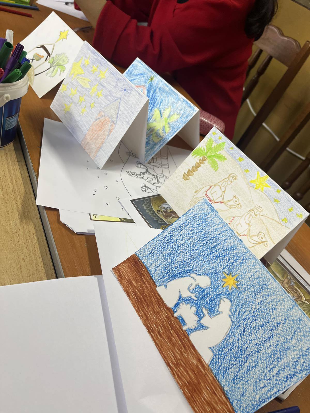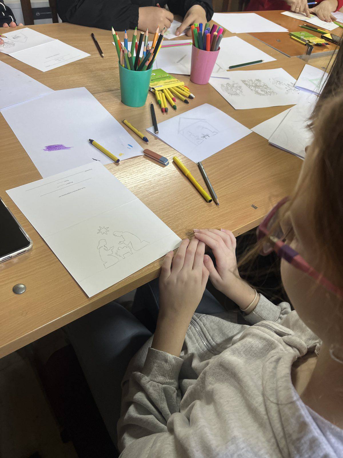 След посещението си в митрополитския храм „Св. Николай Чудотворец“ и запознаване с традициите на предстоящия празник децата изработиха и своите картички.
