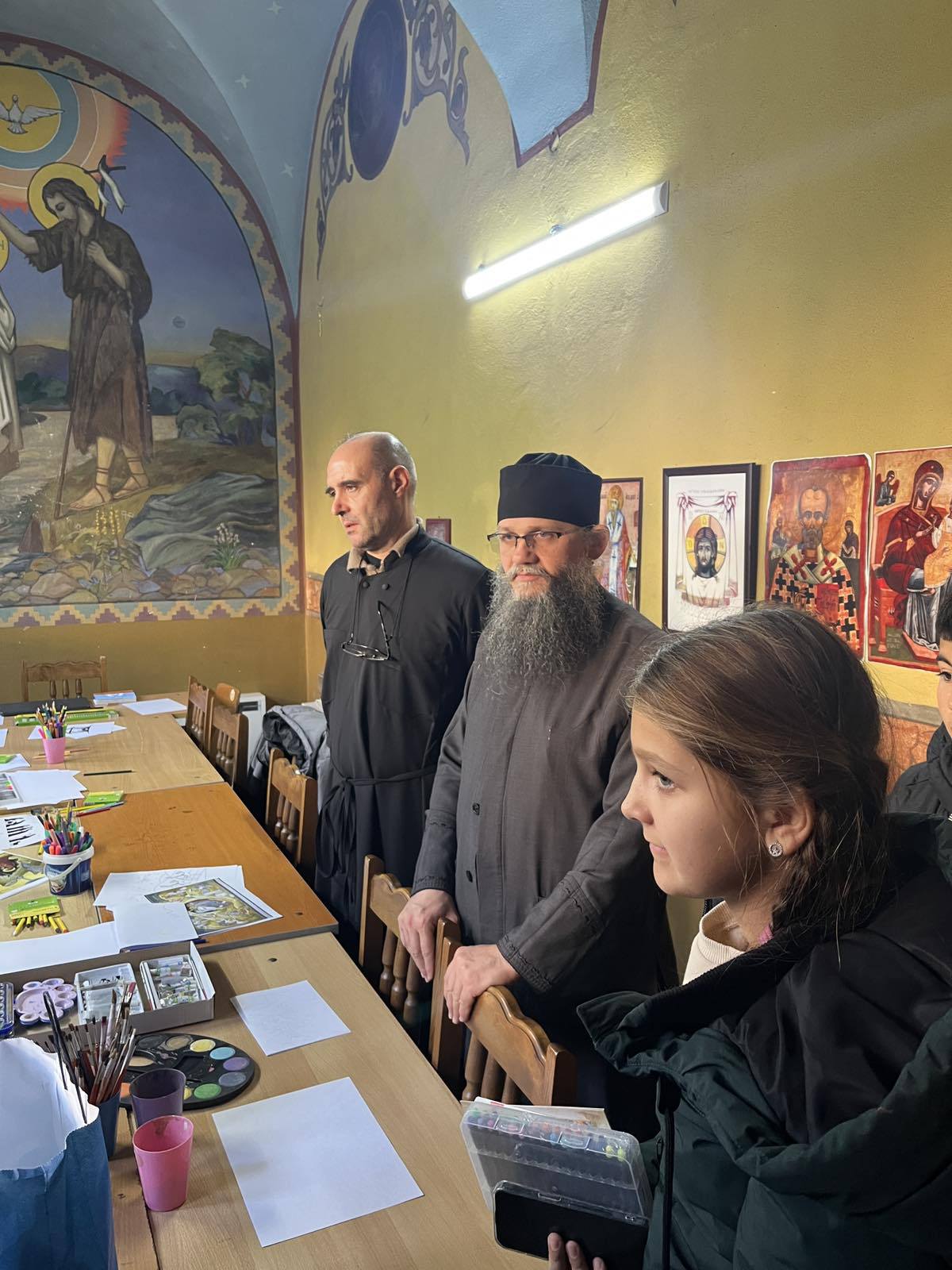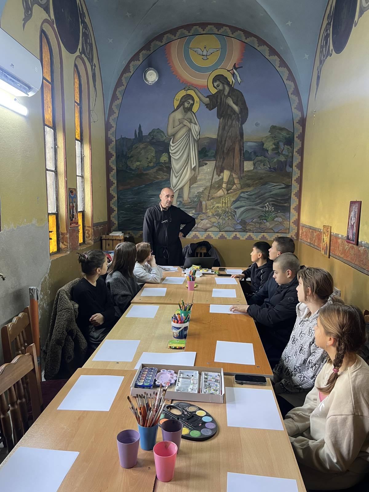 Началото на заниманията им в работилницата бе дадено с молитвата „Отче наш…“, а отец Андрей от катедралния храм „Св. великомъченик Димитър Солунски“ в града запозна децата с предстоящия празник и евангелските събития. След това им помогна да нарисуват различни сцени и образи от разказа, разказващи за раждането на божия син.