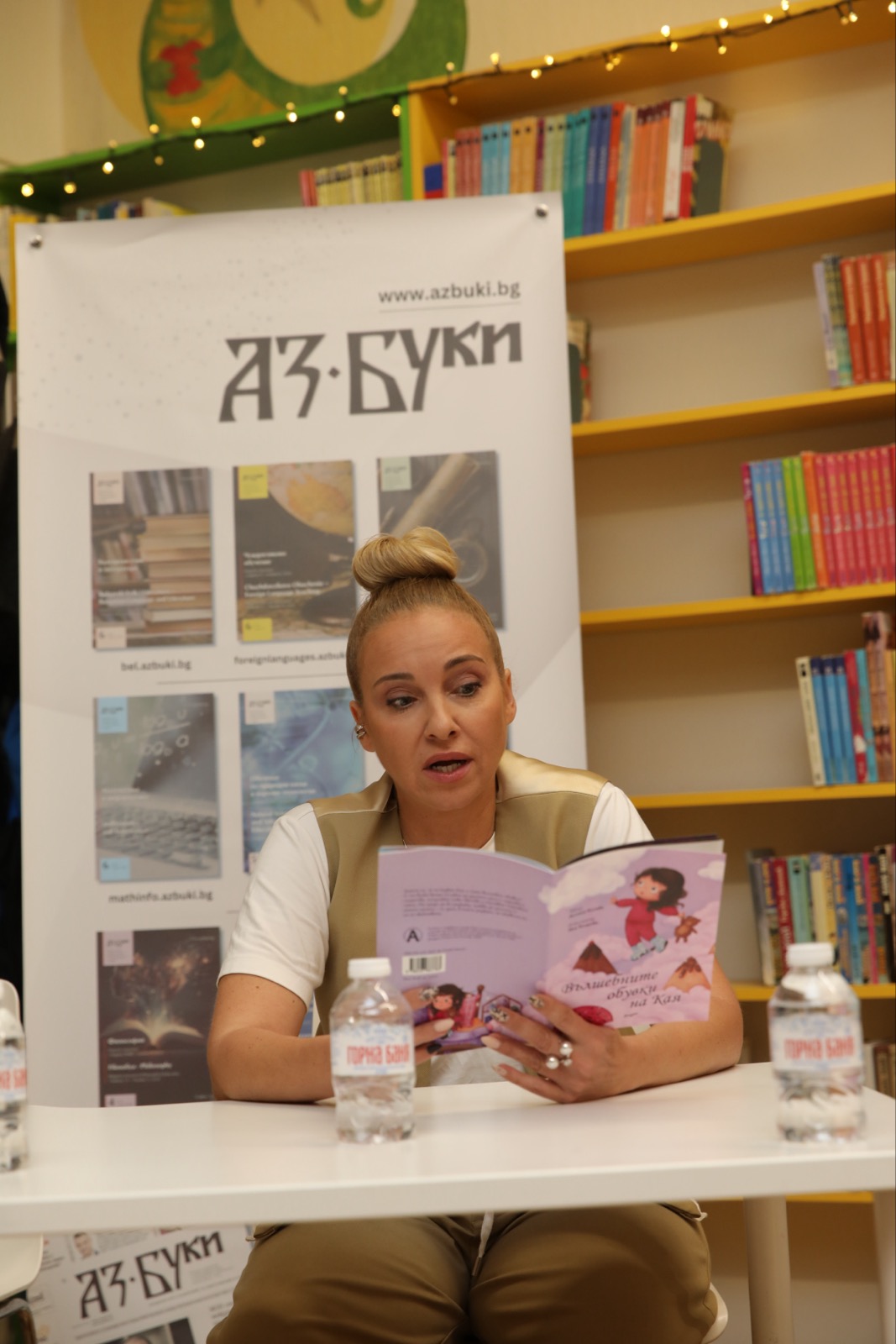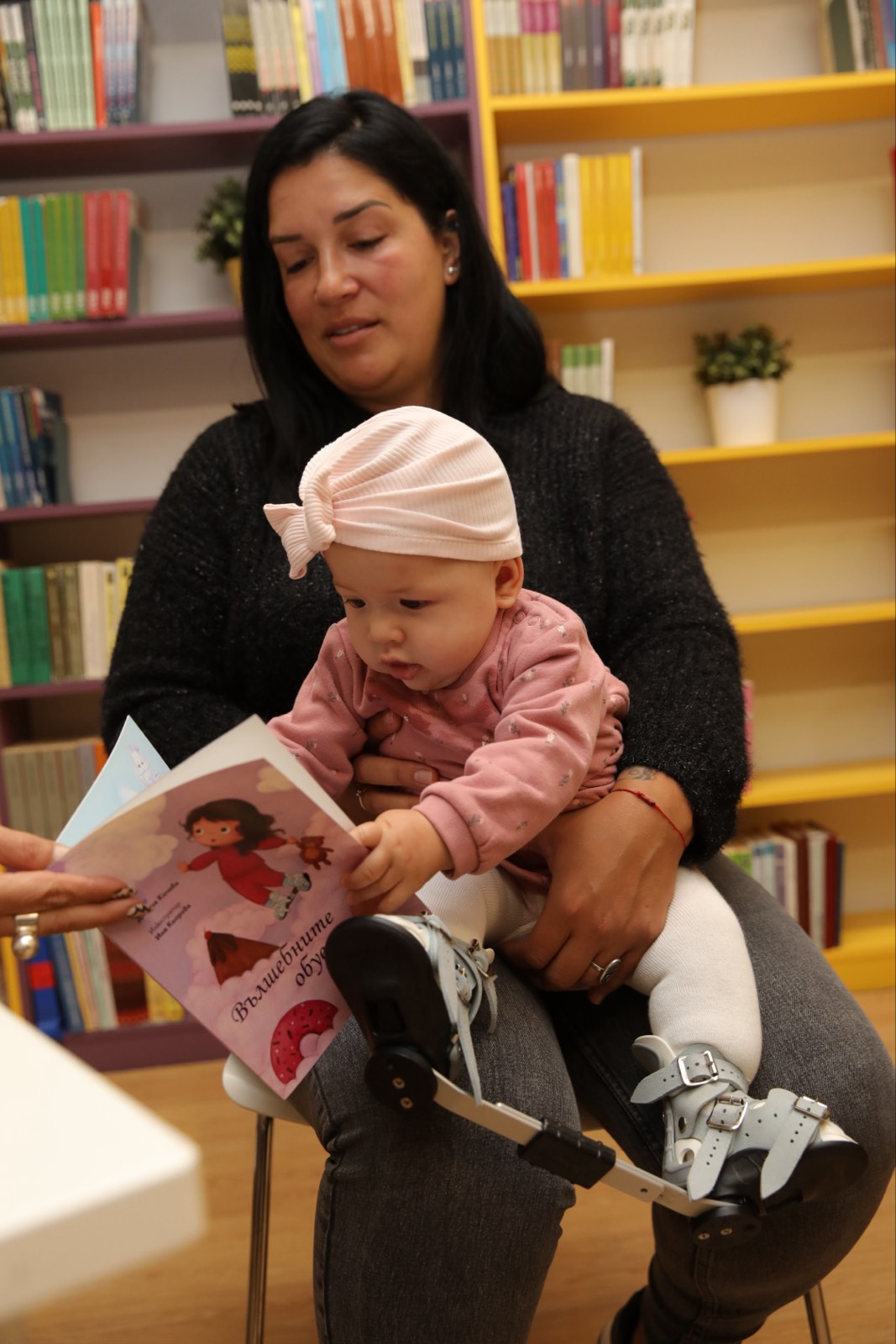 която прочете откъс от книгата и сподели пред многобройната публика защо е подкрепила събитието. В представянето участваха още Емил Спахийски, директор на издателство „Аз-буки“, който беше модератор на събитието, и Борислава Борисова, майка на 6-месечната Тея, родена с еквиноварус.