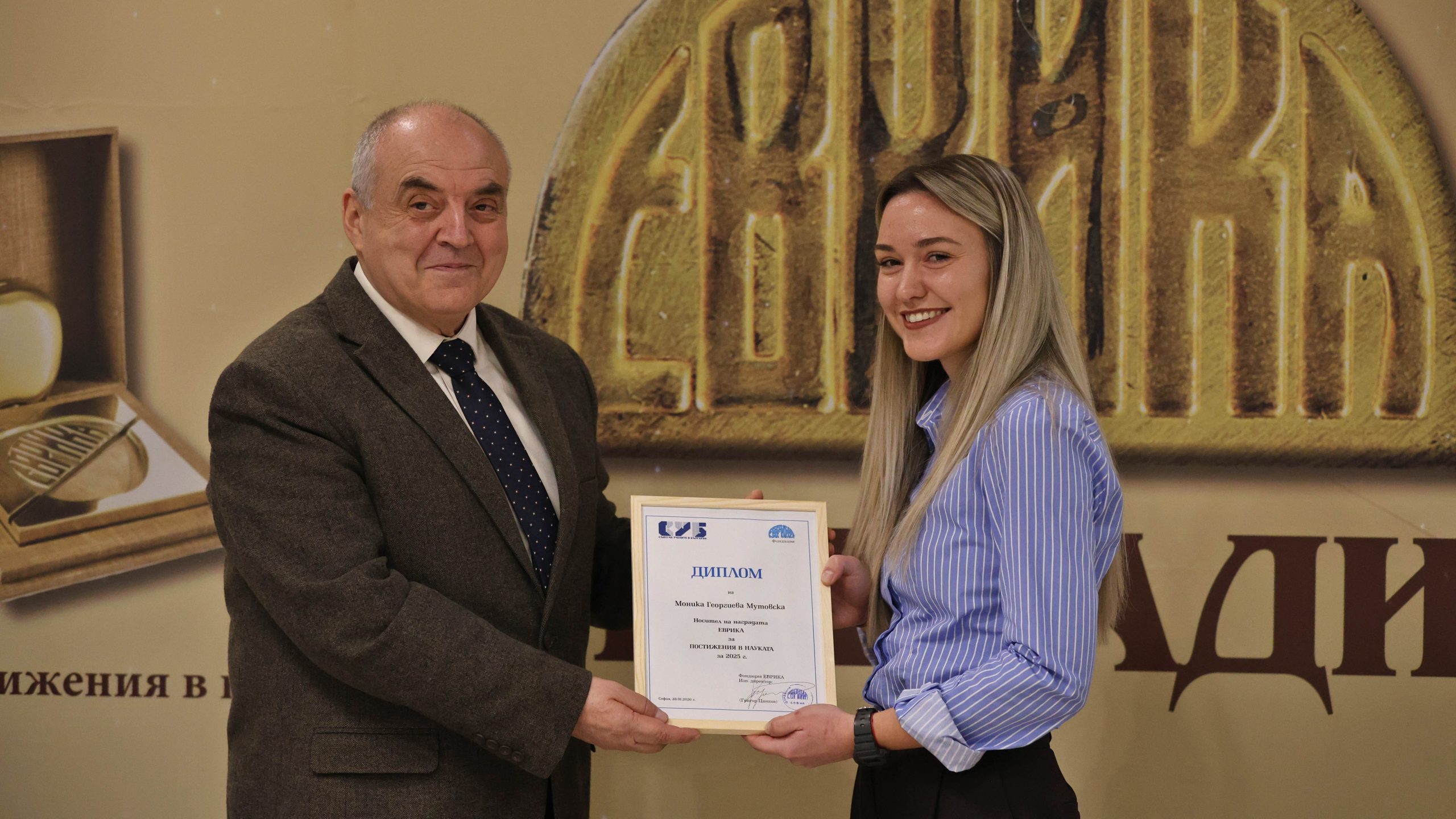 На тържествена церемония бяха връчени наградите „Еврика“ за 2025 г. за постижения в науката, за най-добър млад мениджър, за млад изобретател и фермер, както и удостоверенията на стипендиантите на Фондацията.