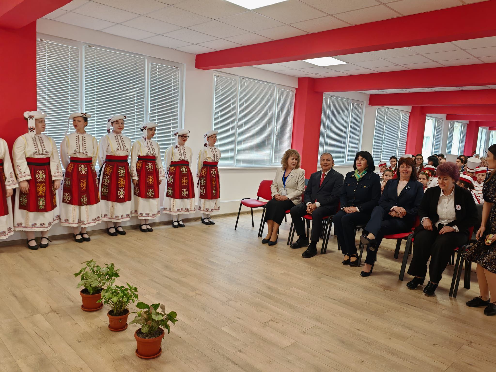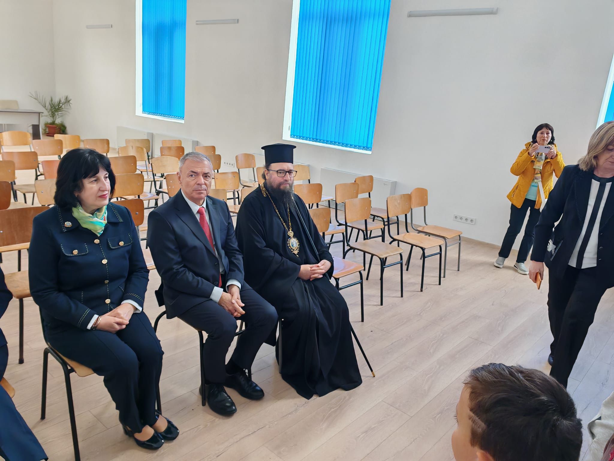В Средно училище „Св. Св. Кирил и Методий“ учениците представиха драматизация „Гласове от миналото“, а министърът разгледа училищната материална база и музейната експозиция.
