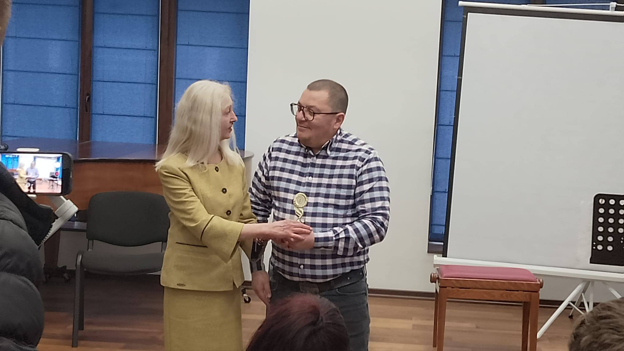 Д-р Алагенски получи плакет за особен принос в развитието на детското творчество, който му бе връчен от директора на Националния дворец на децата Татяна Досева.