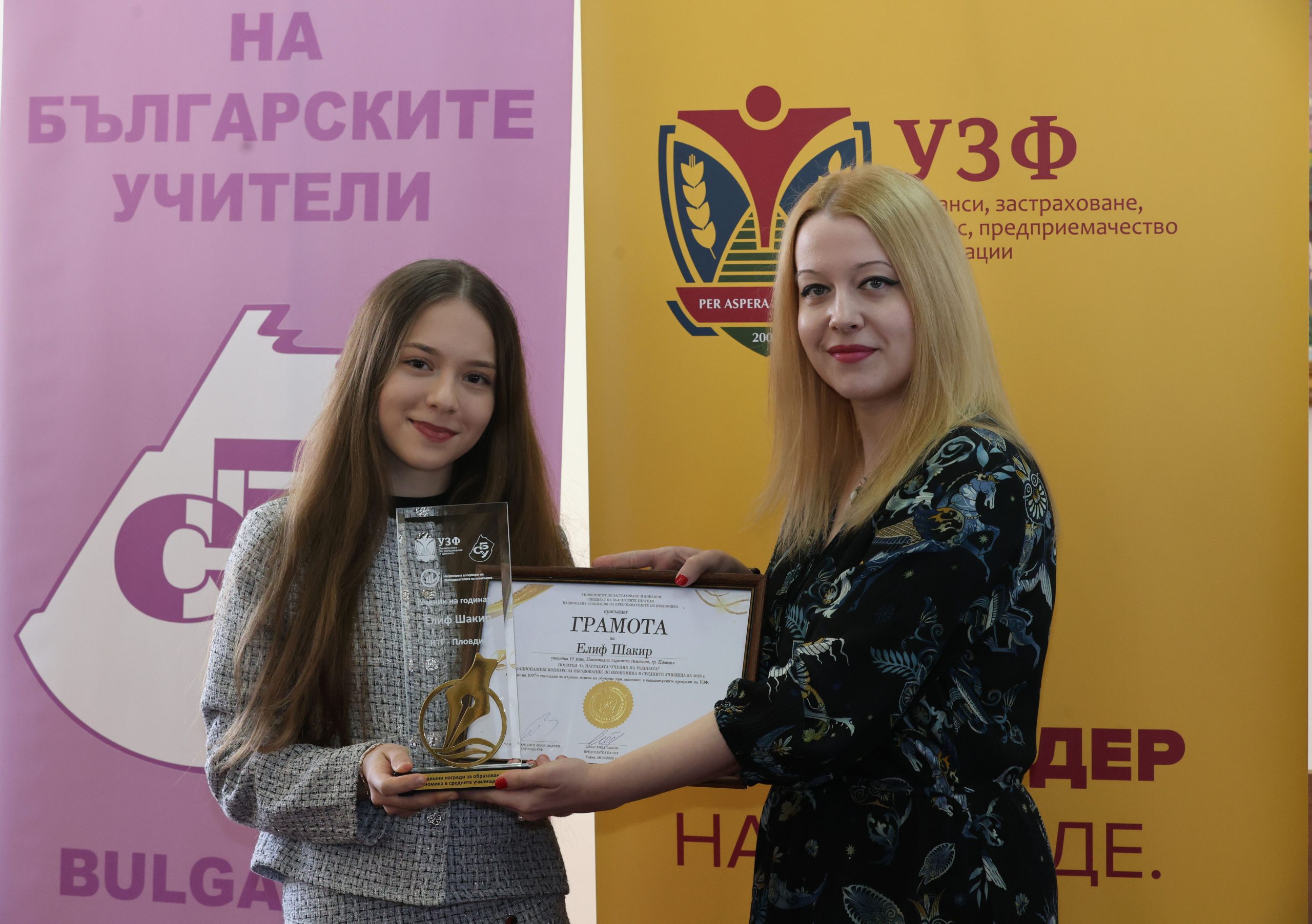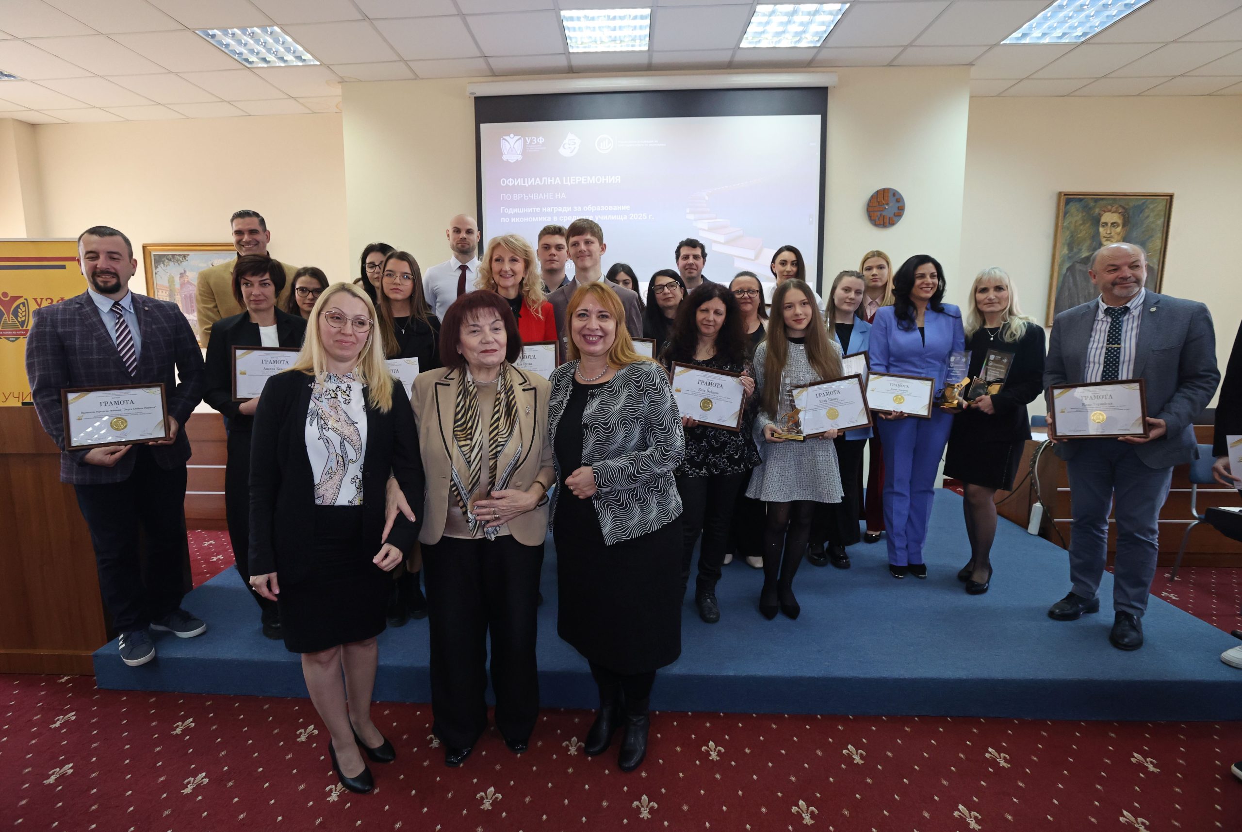 В Университета по застраховане и финанси се проведе тържествената церемония по връчване на Годишните награди за образование по икономика в средните училища за 2025 г.