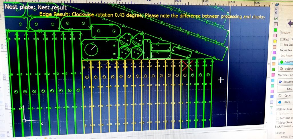 After nesting and if the other preconditions are met, the machine is ready to cut the parts.