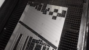 The parts in Fig. 5 are ready for extraction (sometimes a manual process) and next takes place the deburring/grinding process to remove the small remainings from the fiber cutting process.