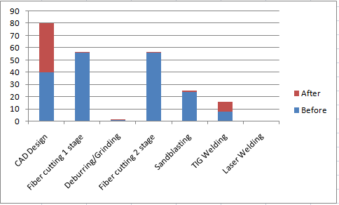 Equation (1) shows that the total lead time is equal to the sum of the individual operations’ lead times for each operation. Fiber laser cutting in the results in Table 1 is shown in two stages since it is observed that normally the the process of building bowls requires two phases of fiber laser cutting as some modifications are required to the main bowl assembly (Dichev et al., 2014).