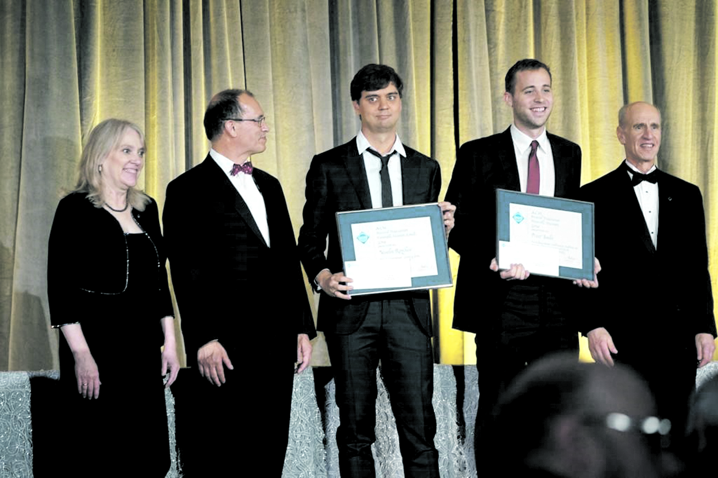 Церемонията от годишните награди на най-голямата организация в сферата на ИТ – Association for Computing Machinery, на която дисертацията на д-р Веселин Райчев (третият от ляво надясно) е отличена в топ 3 в света за 2016 г.