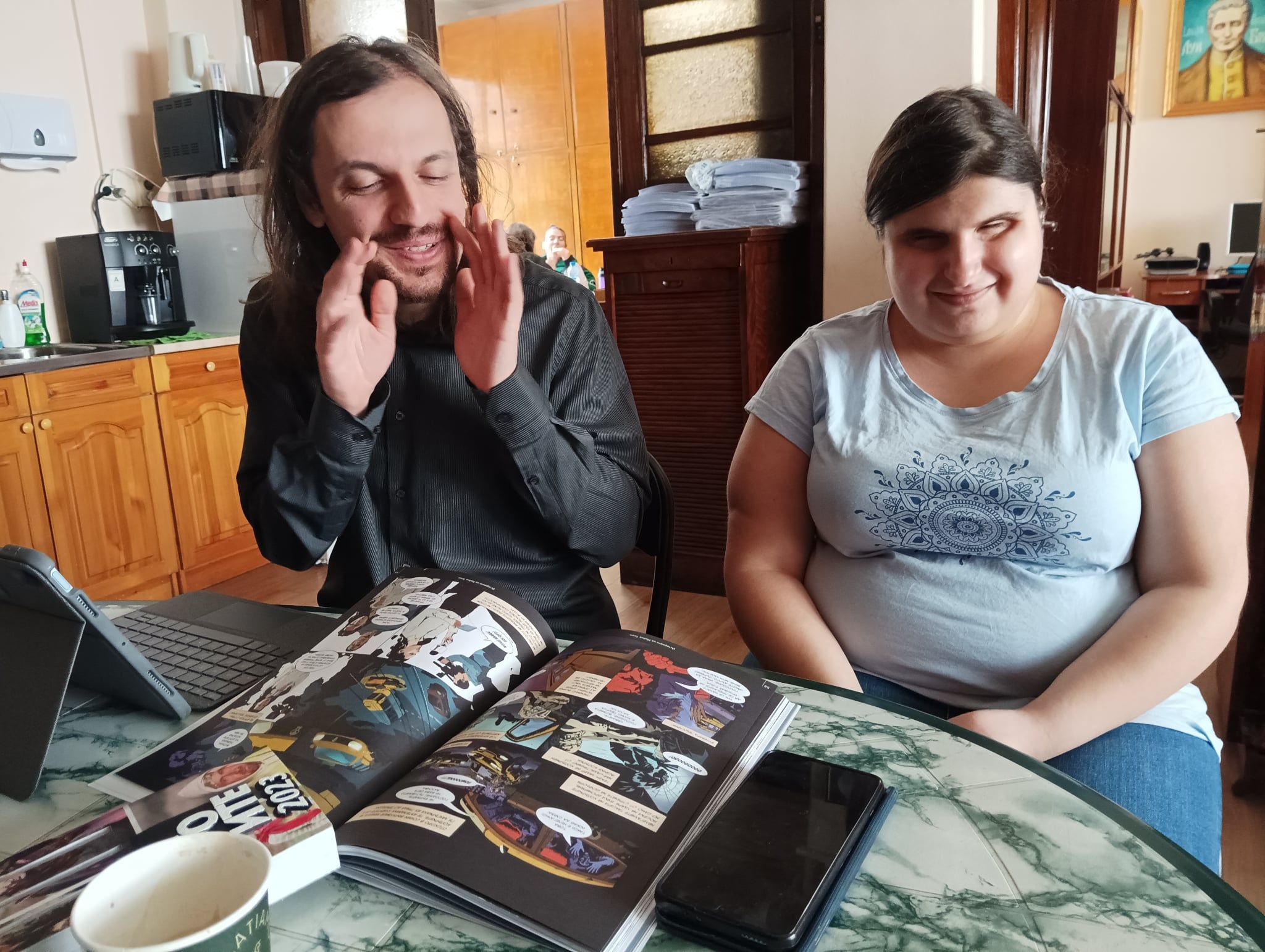 „Имаше нещо като курсова работа – да дадем предложения за написване на проект. Тогава пуснах идеята за адаптиран комикс за незрящи и няколко души проявиха любопитство. Дима беше една от тях“, споделя Карастоянов.