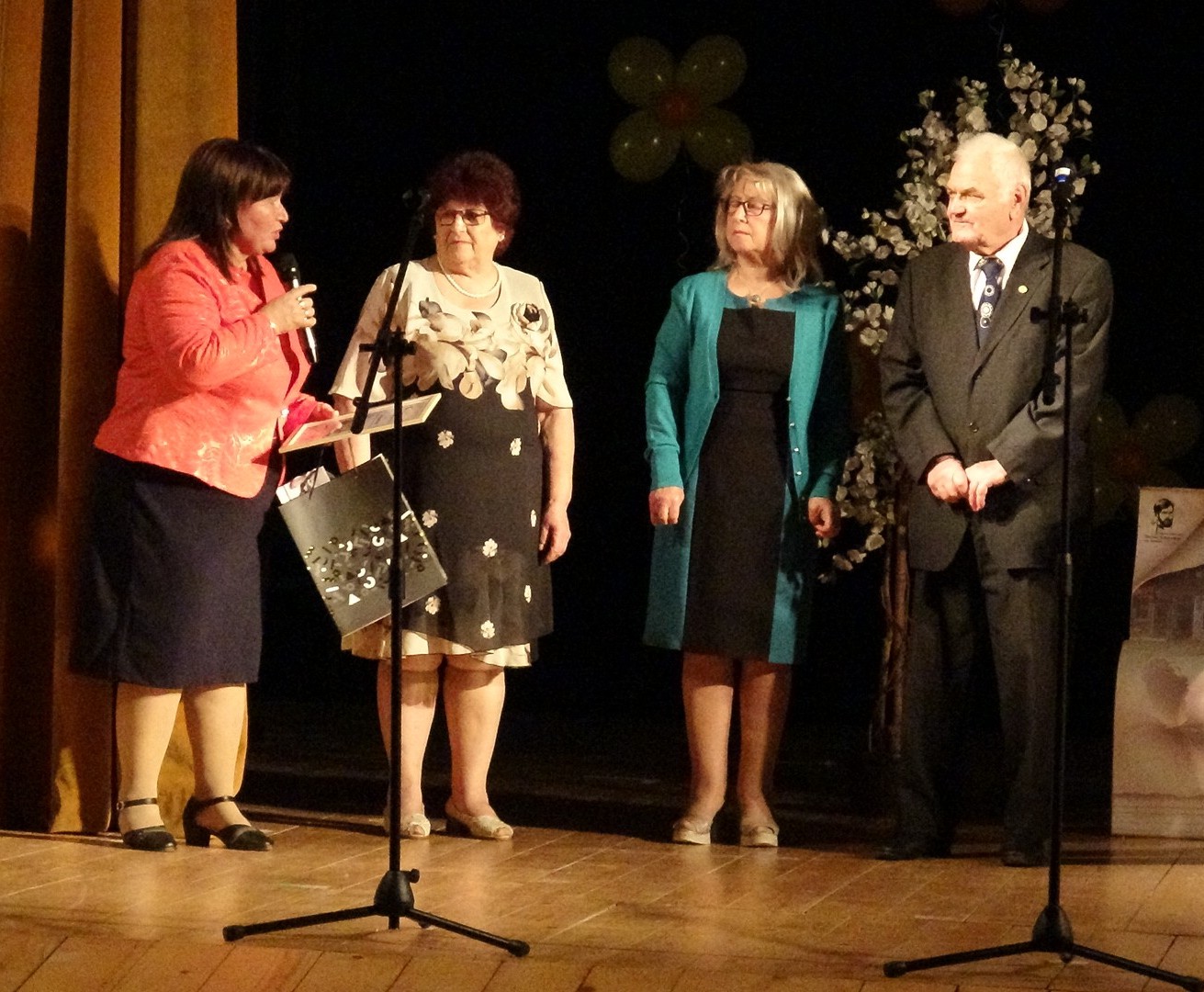 Георги Трушков – основател и първи директор, Донка Кирицова и Радка Дончева с плакет с Дебеляновия лик за професионализма и отдадеността им през годините към училището.