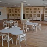 Занималните са съобразени с нормативните изисквания за площ, височина и осветеност, а мебелите са модерни, функционални и изработени от качествени материали. Всяка група разполага със собствено приемно помещение с гардероб и санитарен възел. Просторното фоайе на първия етаж, решено без прегради, посреща децата и осигурява свободна комуникация към останалите помещения, стълбището и асансьора.
