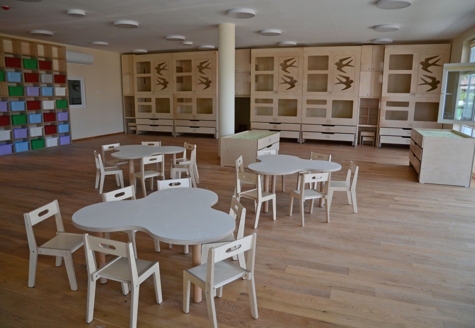 В нея са обособени помещения за четири групи, физкултурно-музикален салон със съблекалня, кабинети, заседателна зала, санитарни помещения, кухненски офиси и самостоятелно котелно помещение.