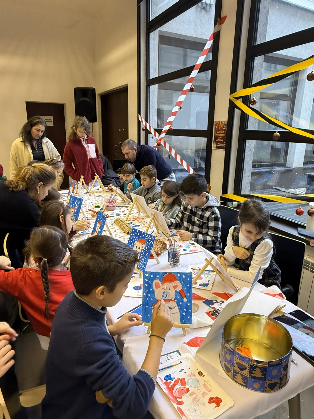 През целия месец учениците изработват коледни украси, свещници, картички, гирлянди и подаръци, които са представени на коледния базар.