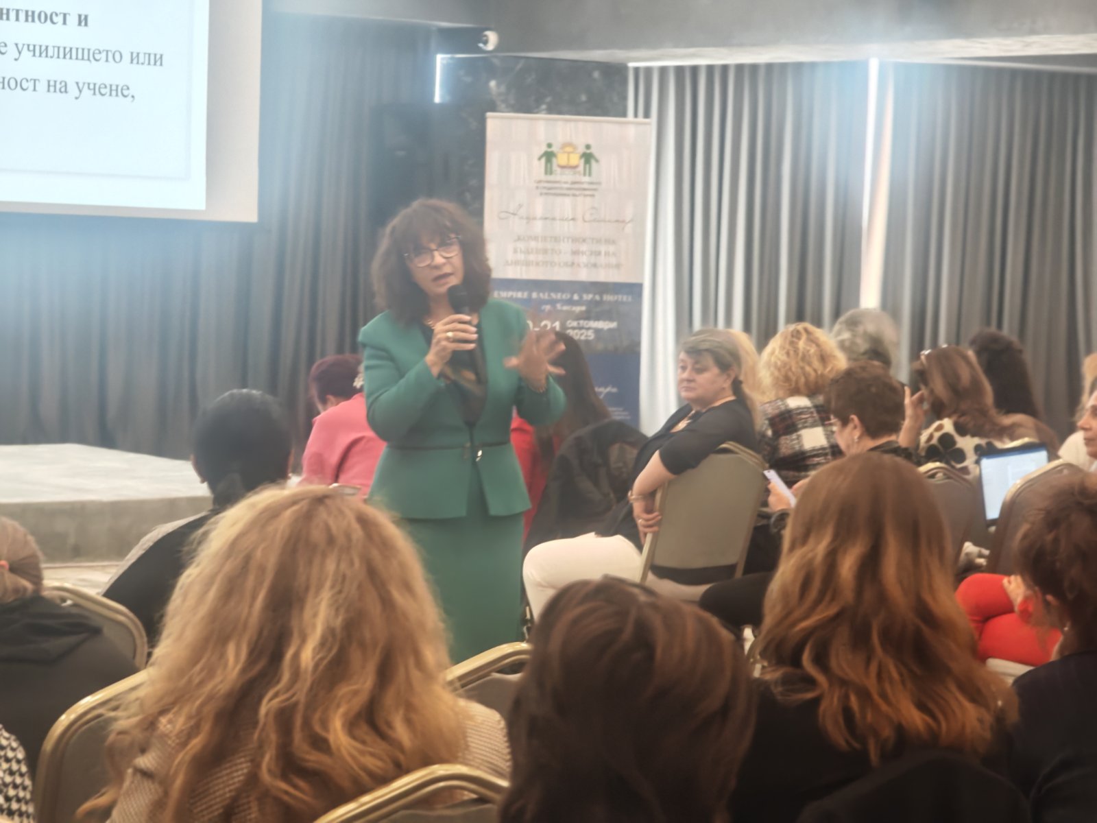 Пред над 230 директори от училища и детски градини от цялата страна д-р Кастрева представи темата „Основни умения на ефективния директор“.