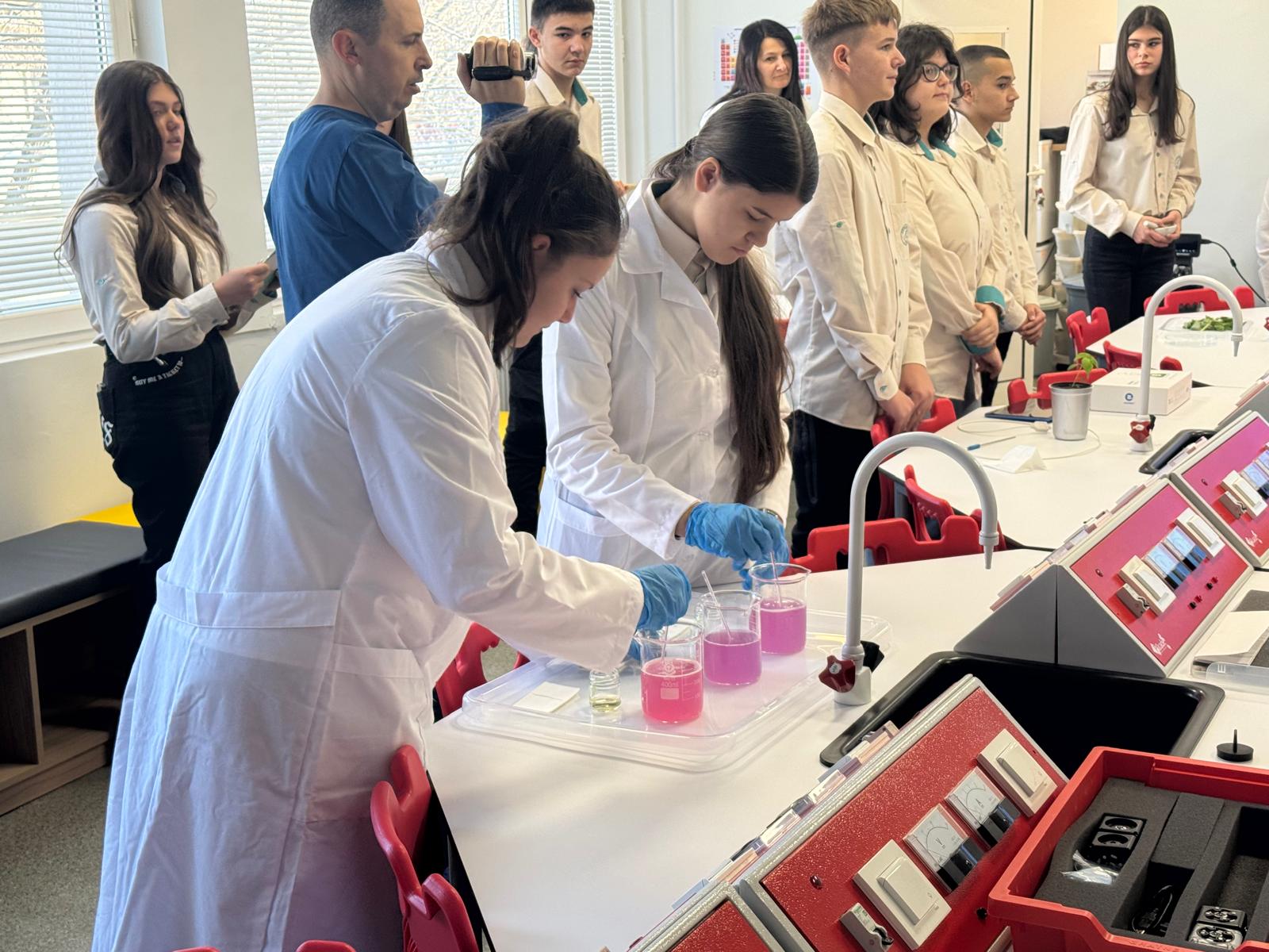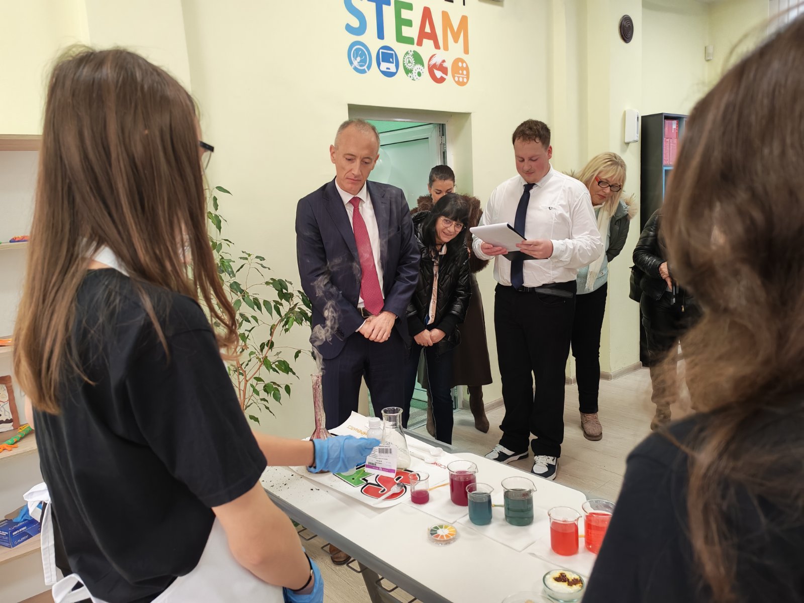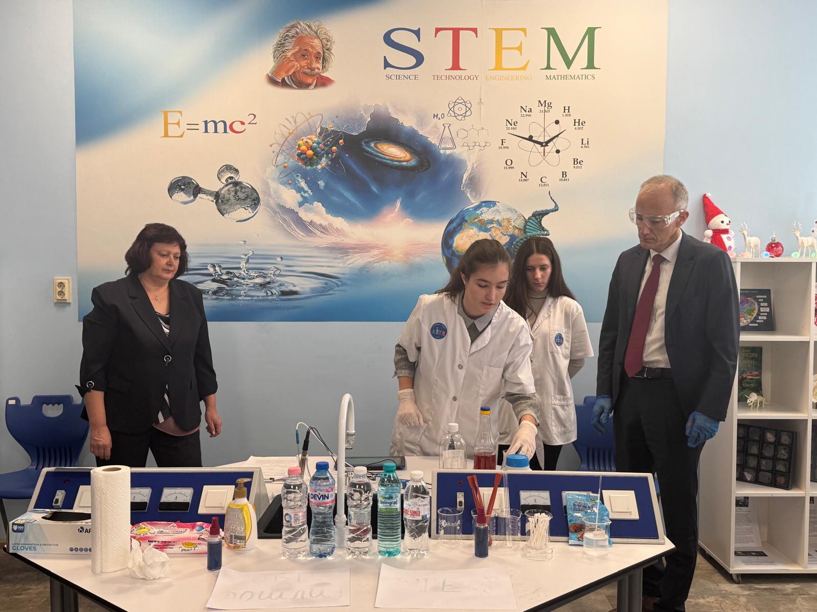 В Х ОУ „Алеко Константинов“ вече правят експерименти и в нов STEM център, изграден с 363 590 лева от Плана за възстановяване и устойчивост. Провежда се