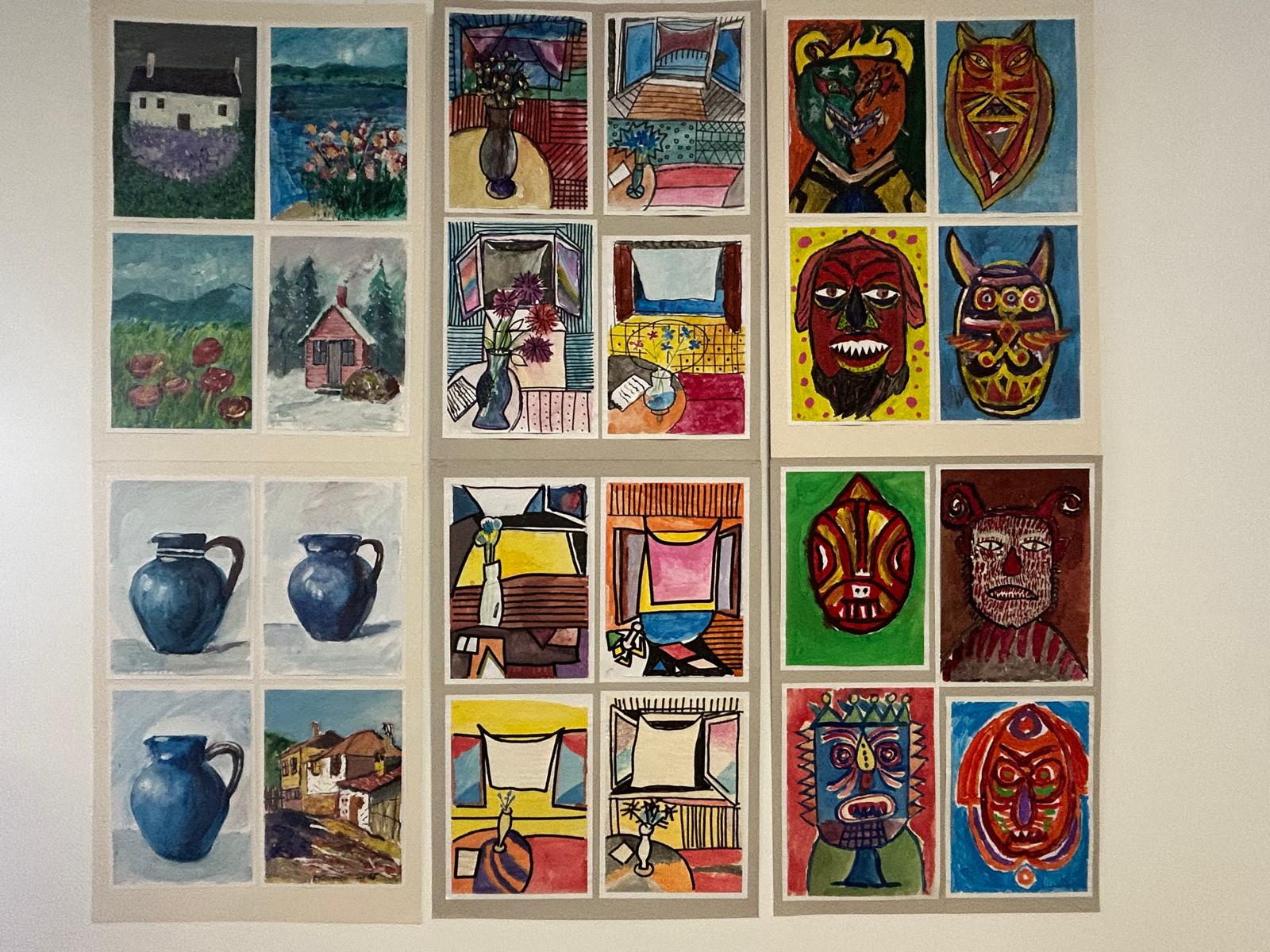 Представени са различни жанрове, застъпени в учебната програма по изобразително изкуство. Освен в часа по учебния предмет учениците развиват своя талант и в група, формирана по НП „Заедно в изкуствата и в спорта“. Това не е първа изява на децата – нееднократно училището е реализирало изложби в градската художествена галерия в Карлово, в библиотека „Д-р Иван Богоров“, както и в РУО – Пловдив.